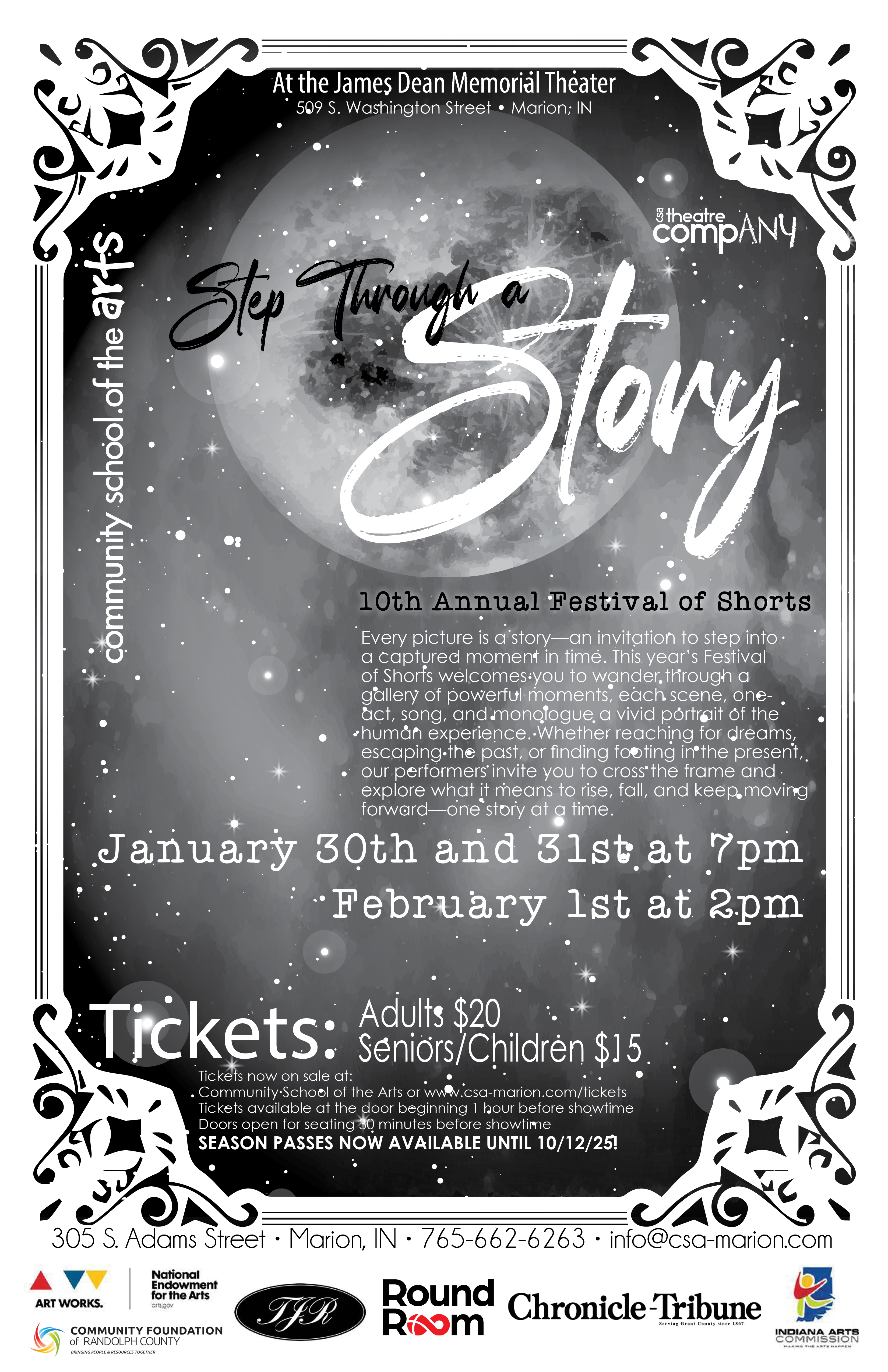 FOR IMMEDIATE RELEASE Community School of the Arts Theatre Company AnnouncesStep Through a Story – The 10th Annual Festival of Shorts Marion, Indiana — The Community School of the Arts (CSA) Theatre Company is thrilled to announce its upcoming production, Step Through a Story – The 10th Annual Festival of Shorts, celebrating a decade of storytelling through powerful, bite-sized theatrical ...read more
